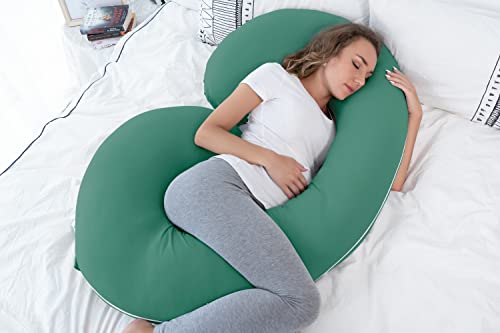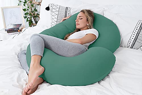 - Comfotable Pregnancy C Shaped. INSEN 58’’ Pregnancy C shaped pillow comfort and follow the contour and shape of your body and helps you relieve back pain, neck stiff, lower back pain. C shaped is perfect for pregnant women with a full body surrounding support such as back, lower back, hip, leg and feet support. This pregnancy C shaped maternity support can relieve your pregnancy pain and pressure and improve sleeping experience.
