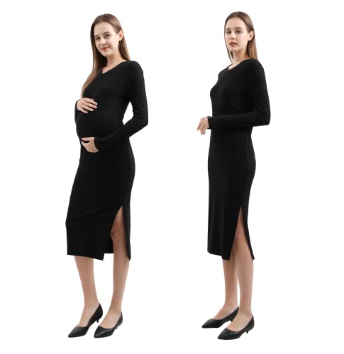 Maternity Sweater Dress for Fall Winter Long Sleeve Warm Dress for Work Casual (Small, V-Neck Black)