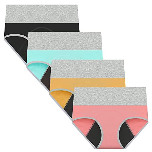 Nalwort Womens Menstrual Period Panties Super Soft Protective Briefs Underwear 4 Pack (2 Black+2 Shrimp, S)