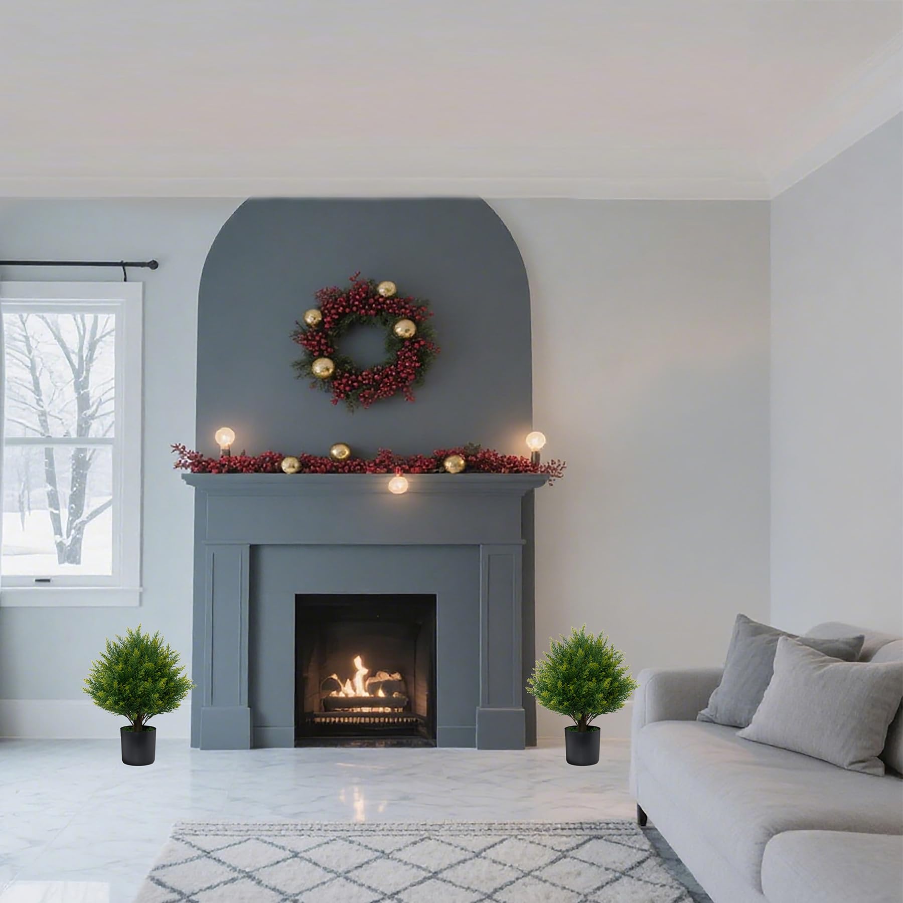 - 【Out of the Box, No Assembly Required】Our artificial cedar topiary tree do not need to be reassembled, just open the package and you can decorate your home. Tips: There may be some deformation of the leaves during transportation, need some re-shaping by hand. We suggest to placing it in bigger decorative planter to make the artificial tree be more perfect.