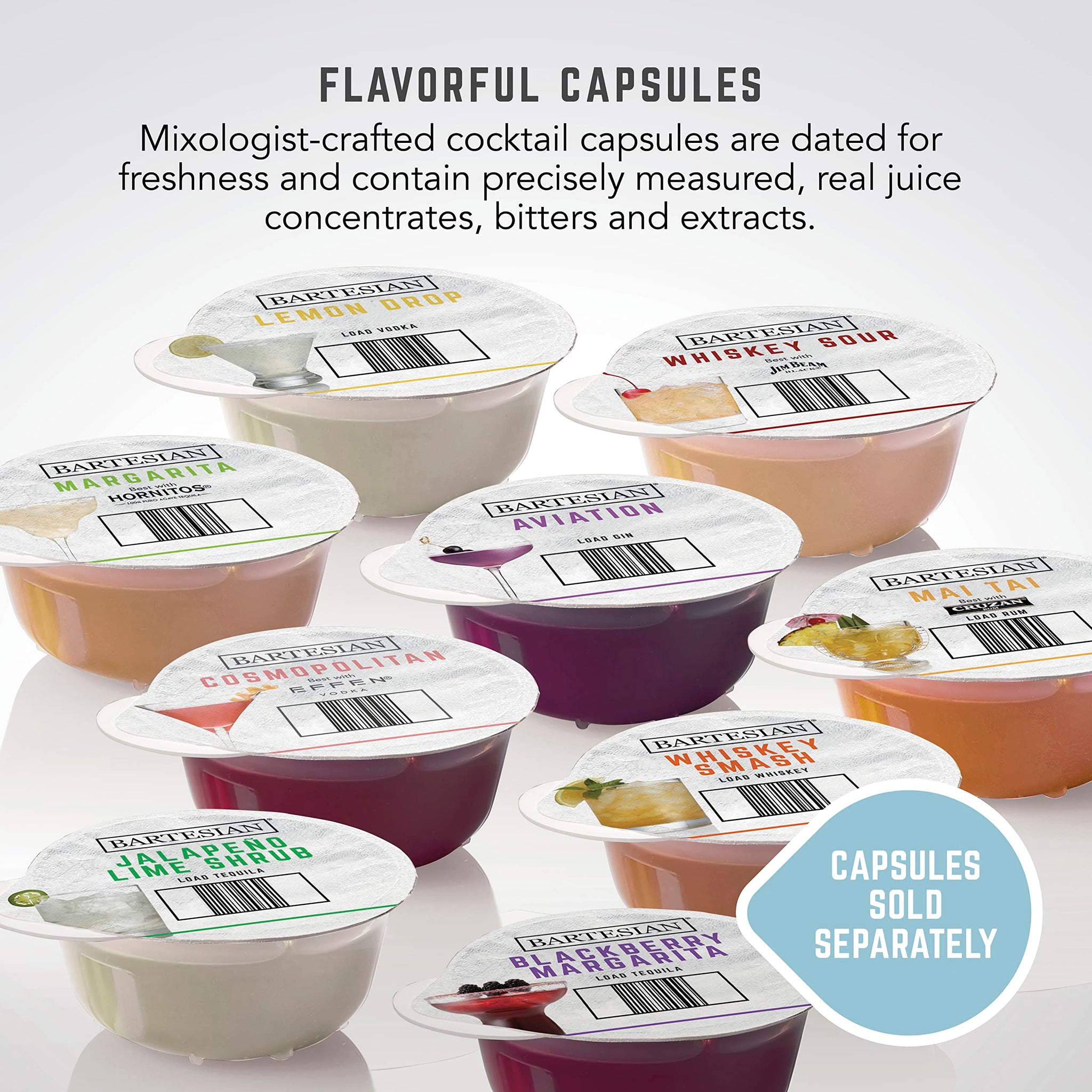 • LESS TIME CLEANING, MORE TIME ENJOYING. The automatic rinse minimizes cleaning and prevents the previous cocktail's ingredients from mixing with the next one. Capsules pop up with spring assistance for quick removal and glass bottles are dishwasher safe.