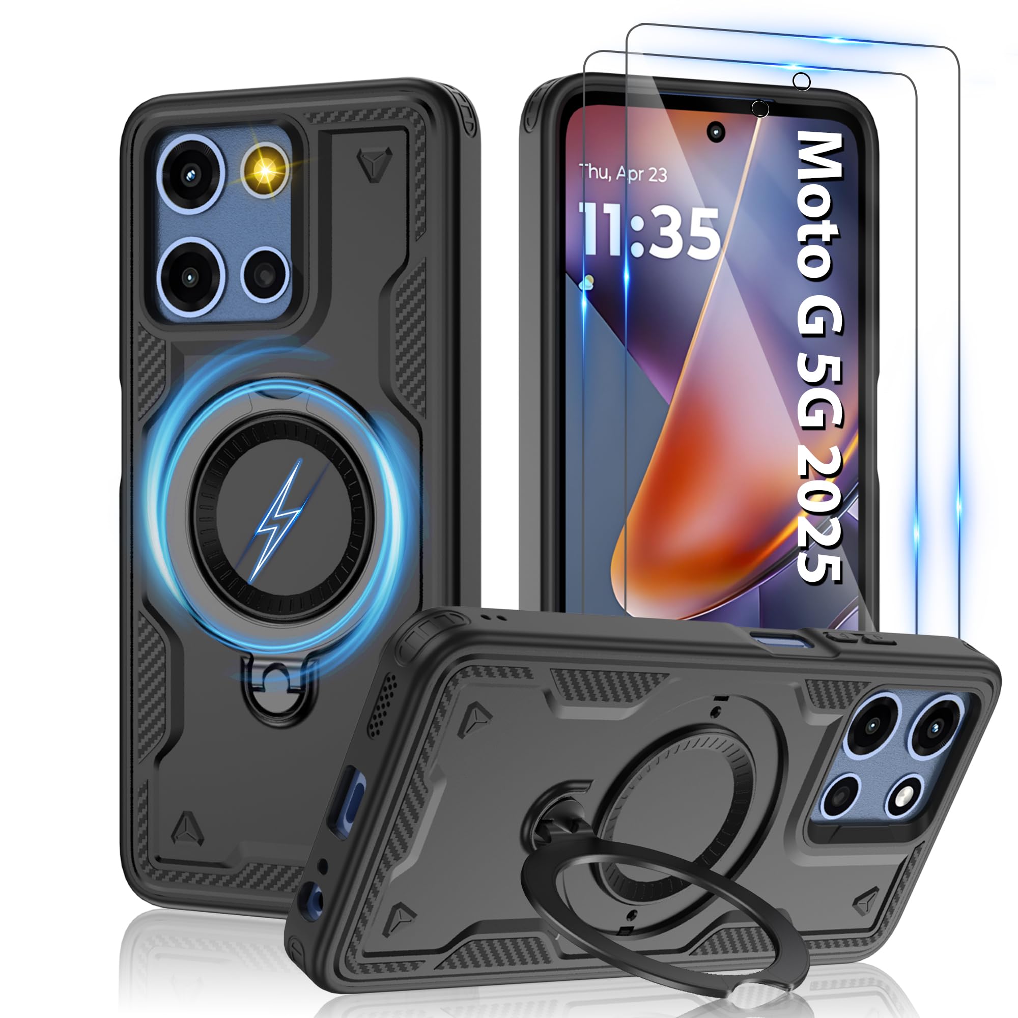 ![Load image into Gallery viewer, Gritup for Moto G 5G 2025 & Moto G 5G 2026 Magnetic Case,Compatible with MagSafe & [HD Screen Protector×2],Metal Rotated Kickstand,Military Grade Drop Proof Anti-Fingerprint Protective,Black](http://pennypart.com/cdn/shop/files/81Plc22js7L_110x110@2x.jpg?v=1769839775)