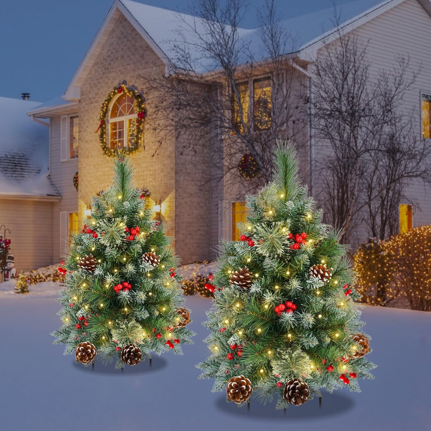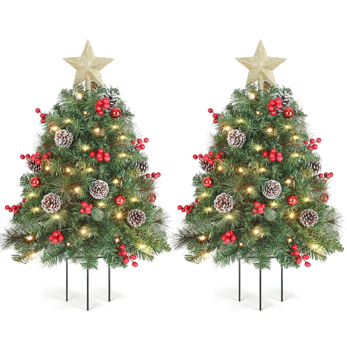 - 🎄Holiday Planter Décor: These stake trees make stunning Christmas décor. Use as outdoor Christmas decorations, porch accents, or centerpiece planters to brighten gardens, fences, flower beds, sidewalks, and yards.