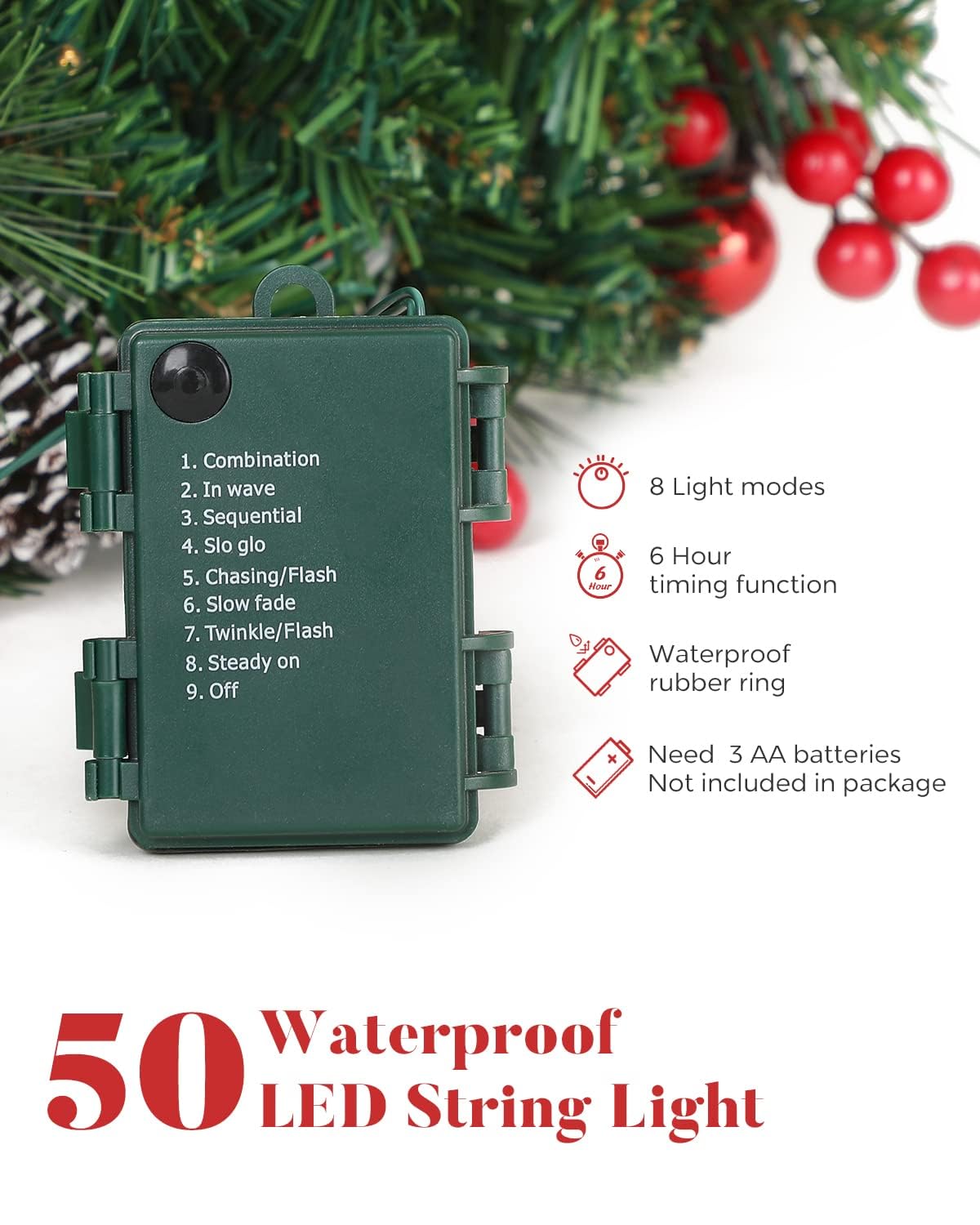 - 🎄Battery Timer Control: This battery operated Christmas tree features a 6-hour on/18-hour off automatic timer. Simply press the button on the battery box to select your favorite lighting mode with ease.