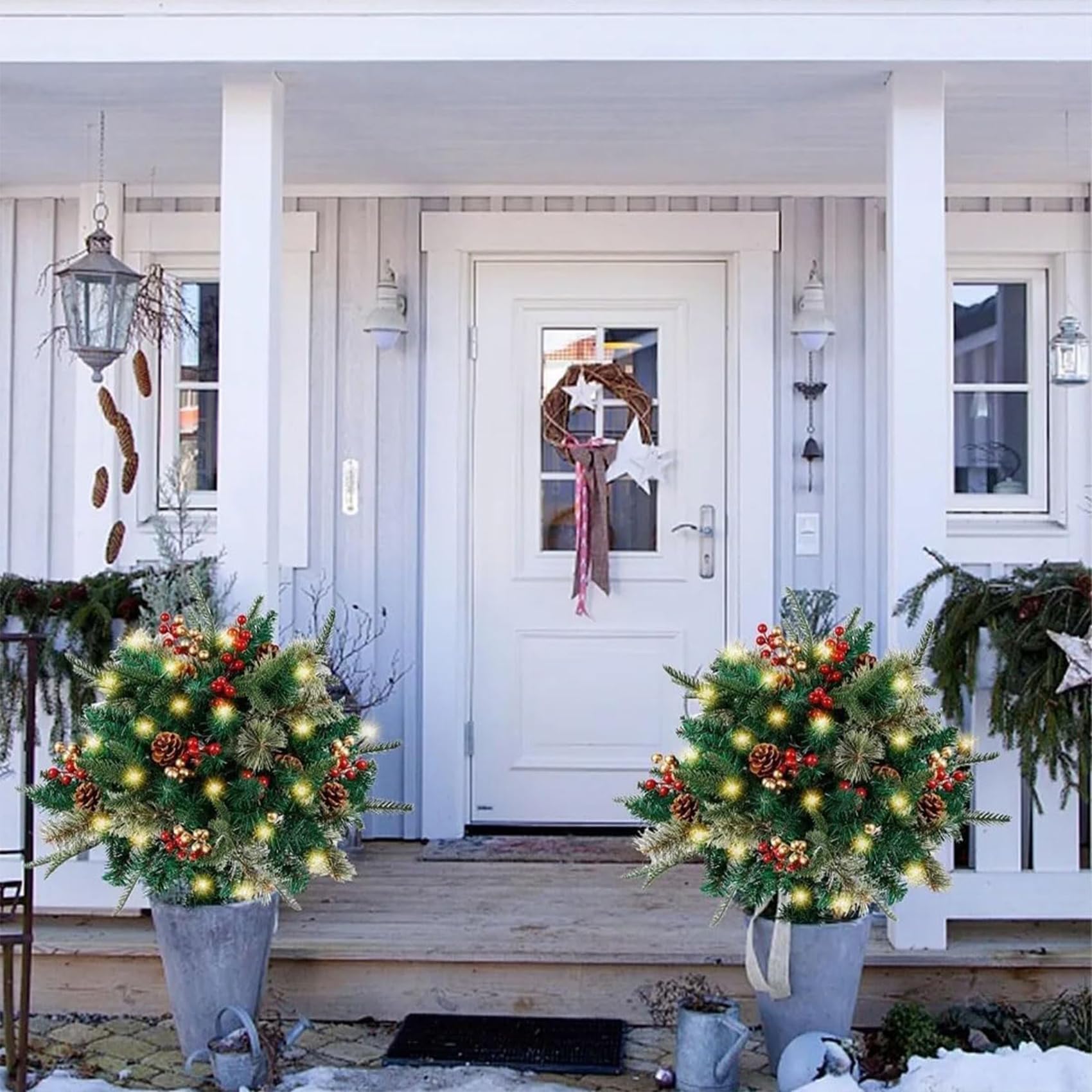 - Versatile Holiday Planter Use: The durable metal design ensures your tree stays upright and secure. Designed to fit urns, planters, or flower beds, this pre-lit artificial christmas tree urn filler is ideal for decorating entryways, gardens, yards, and balconies, elevating any holiday display with seasonal charm