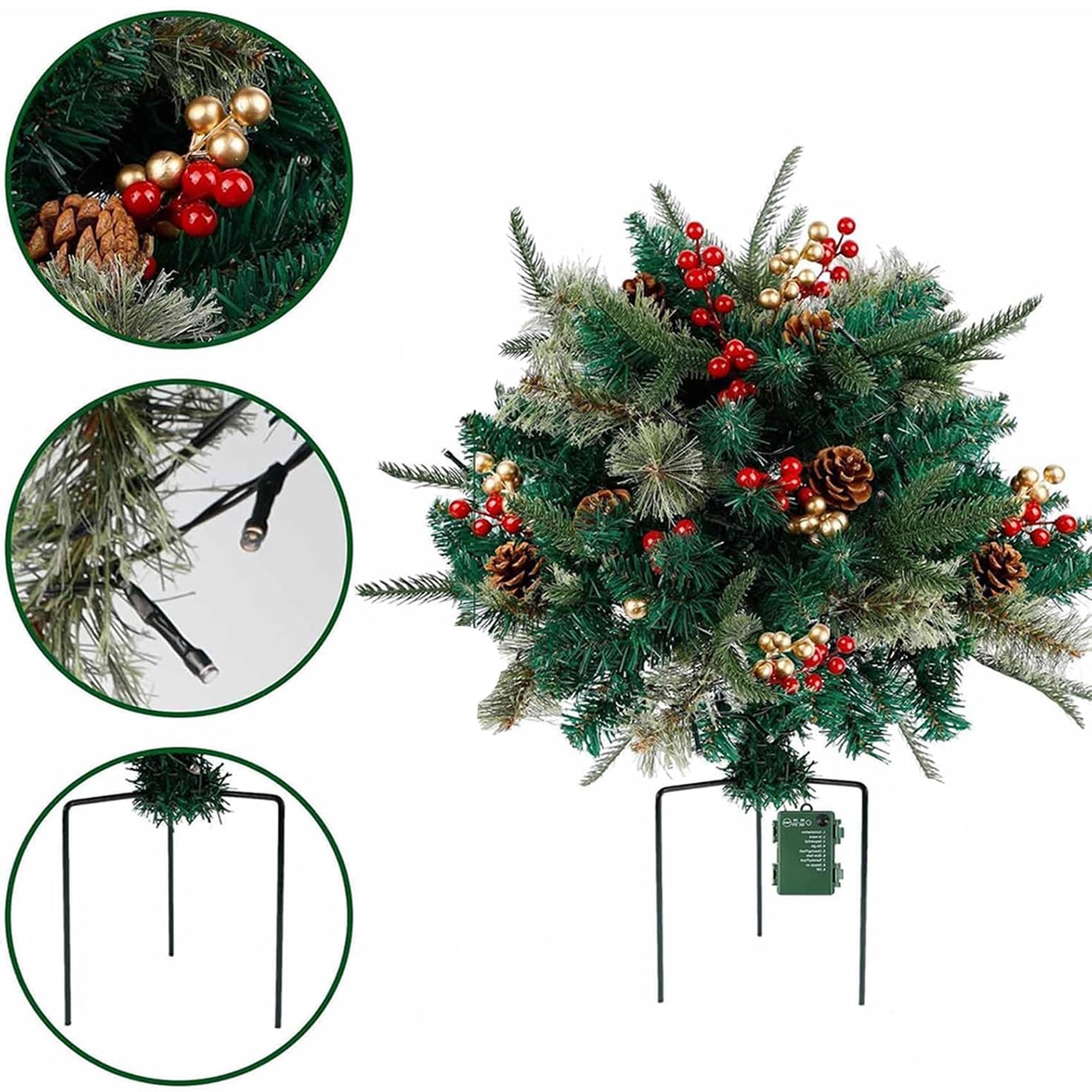 - Durable Outdoor Construction: Made of sturdy PVC branches with a reinforced 3-prong metal stake, this lighted holiday planter filler for outdoor ensures stability and long-lasting beauty even in outdoor winter conditions—pre-lit artificial christmas tree urn filler ideal for porches, patios, yards, gardens, and pathways. Pack away after the holidays for year-after-year use