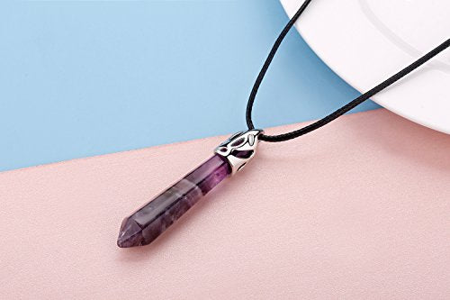 Details: 7 PCS genuine raw quartz crystal pendant. Material:raw quartz Can work as a long necklace, a pendulum or a balancing piece for room. Every stone is unique and magic.Come with a gift box and a chain.Every Piece is Unique with Different Mysterious Color Design. Great As A Gift To Your Friends Or Yoursef!Weight: approx 10-14 g Qty: 7pcs 1.Purple-Amethyst(natural) 2.White Howlite(natural) 3.Black Onyx(natural) 4.Pink-Rose quartz(natural) 5.Clear quartz (natural) 6.Tiger eyes (natural) 7.Unakite(natural):Green epidote and red orthoclase feldspar mineral,Different color:may receive green with red OR green