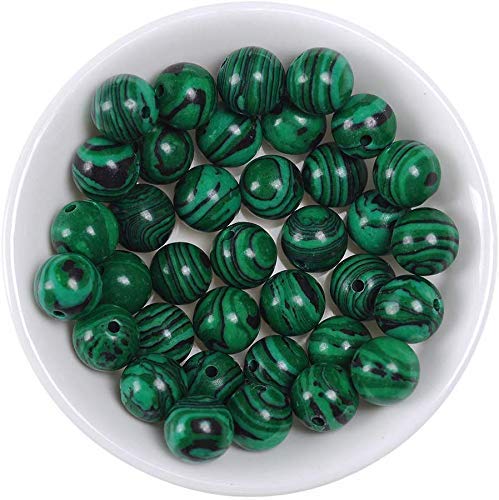 8mm Green Malachite Beads Stone Loose Beads Gemstone Round Beads Energy Healing Beads for DIY Jewelry Making Approxi 15.5 inch 45pcs 1 Strand per Bag