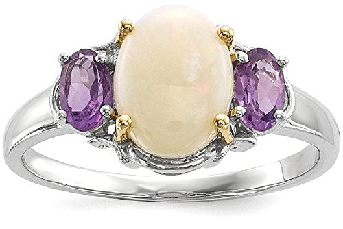 ICECARATS DESIGNER JEWELRY 925 STERLING SILVER 14K OPAL PURPLE AMETHYST BAND RING SIZE 7.00