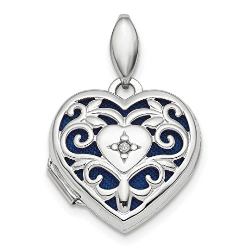 Details: ICECARATS DESIGNER JEWELRY 925 STERLING SILVER FILIGREE DIAMOND HEART PHOTO PENDANT CHARM LOCKET CHAIN NECKLACE THAT HOLDS PICTURES Material Purity : 925 Finish : Polished Stone Type 1 : Diamond Stone Color 1 : Clear Stone Quantity 1 : 1 Length : 23 mm Plating : Rhodium Stone Weight 1 : 0.5 ct Charm/Element Length : 15 mm Charm/Element Width : 15 mm Feature : Opens Manufacturing Process : Die Struck Material : Sterling Silver Item Weight U/M : gm Width : 15 mm Engravable : Not Recommended Product Type : Jewelry Jewelry Type : Pendants & Charms Sold By Unit : Each Pendant/Charm Type : Locket Texture : Filigree Material : Inlay : Fabric Bail Width : 3 mm Material Color : White Bail Length : 7 mm Stone Creation Method 1 : Natural OUR MISSION & BELIEFSOur mission at IceCarats is to celebrate our customers and enhance their lives journey, honoring life's memorable occasions and enhancing the beauty of everyday through our extensive collection of quality jewelry. THE ICECARATS STORY - CRAFTSMANSHIP...QUALITY...VALUEJewelry is our passion - IceCarats is devoted to craftsmanship, quality, and value. Each piece hand stamped for authenticity MADE WITH LOVE FROM US TO YOU - QUALITY WITHOUT COMPROMISEWhen you purchase jewelry from the IceCarats collection, you buy with confidence - Lifetime Warranty and 30-Day Returns . ELEGANT GIFT PACKAGING - JUST ANOTHER REASON TO SAY YES!Receive Elegant Gift Packing On Every Order with IceCarats!