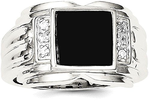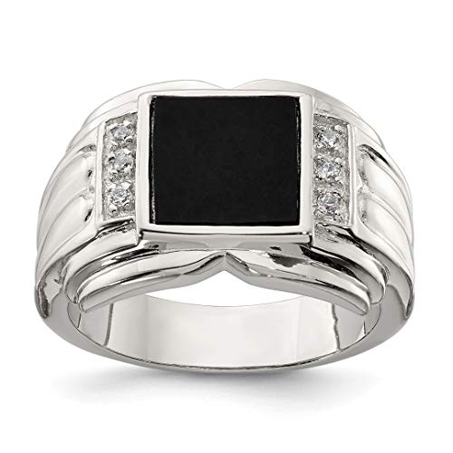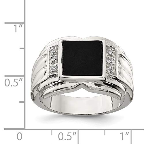 ICECARATS DESIGNER JEWELRY 925 STERLING SILVER MENS CUBIC ZIRCONIA CZ BLACK ONYX BAND RING SIZE 10.00