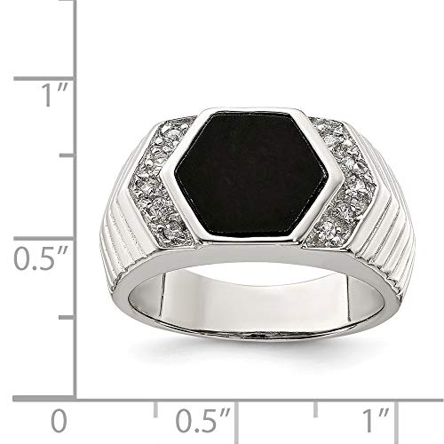 925 Sterling Silver Mens Cubic Zirconia Cz Black Onyx Band Ring Size 10.00 Man Fine Jewelry For Dad Mens Gifts For Him
