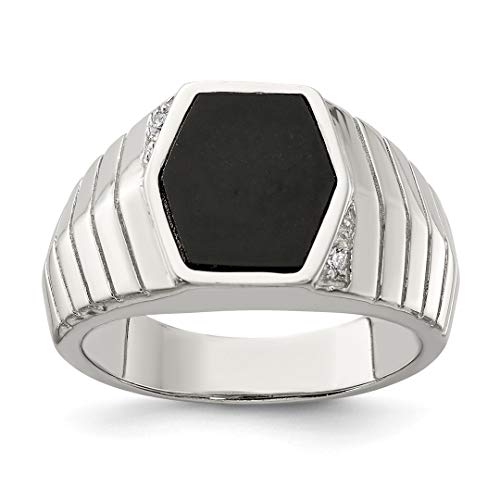 ICECARATS DESIGNER JEWELRY 925 STERLING SILVER MENS CUBIC ZIRCONIA CZ BLACK ONYX BAND RING SIZE 11.00