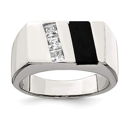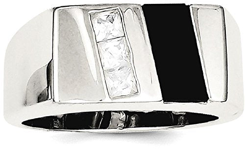 ICECARATS DESIGNER JEWELRY 925 STERLING SILVER MENS CUBIC ZIRCONIA CZ BLACK ONYX BAND RING SIZE 9.00