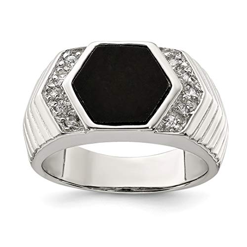 ICECARATS DESIGNER JEWELRY 925 STERLING SILVER MENS CUBIC ZIRCONIA CZ BLACK ONYX BAND RING SIZE 9.00