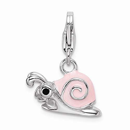 ICECARATS DESIGNER JEWELRY 925 STERLING SILVER RH ENAMEL PINK SNAIL LOBSTER CLASP PENDANT CHARM NECKLACE