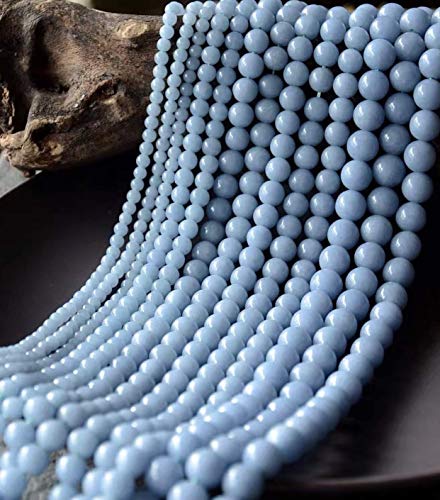 Details: Mexican Sky-Blue Celestite Crystal AKA Celestine (Gorgeous Baby-Blue Color- Mohs Hardness 3.5) 10mm Smooth Round Natural Semi-Precious Gemstone Healing Energy Beads