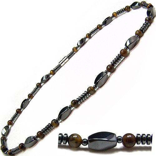 Details: Accents Kingdom introduces a stylish magnetic hematite necklace, the piece features tiger's eye beads, twist black magnetic hematite beads and a strong magnetic clasp enclosure which will hold this fabulous piece in style. Each magnetic hematite bead measures Approx. 600 -700 gauss magnetic power(Each Magnet). It meausres 1/4" in width and looks great on both men and women.