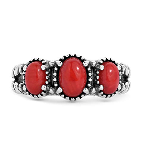 - WESTERN JEWELRY FOR THE BOLD AND THE BEAUTIFUL – Easily add a splash of vibrant color to any look with this versatile friendship ring. Three oval shaped Red Coral gemstones at center, prong-set design looks elegant under any light. Carefully polished and partially oxidized with flower accents. MEASURES 3/8 inch wide.