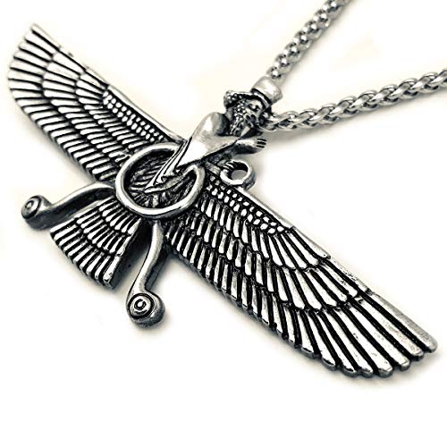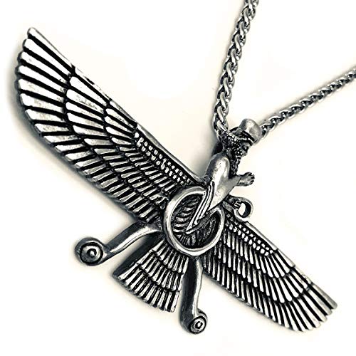 Asoodehdelan Xtra Large Sterling Silver Persian Farvahar Faravahar Necklace