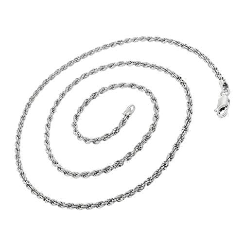 - ✦ BEAUTIFUL & EXPENSIVE LOOKING ✦ Authentic 925 Solid Sterling Silver Diamond-Cut Rope Chain. ZERO Nickel & ZERO Allergic Reactions. Solid with the Perfect Amount of Flash. Each Twist Pattern is Made with Laser Focus to Detail. Smooth Around your Neck & Vibrant all Around. No Hair Pulling or Skin Pinching, Comfortable to Wear. Beautiful, Shining, and Amazing to Look At