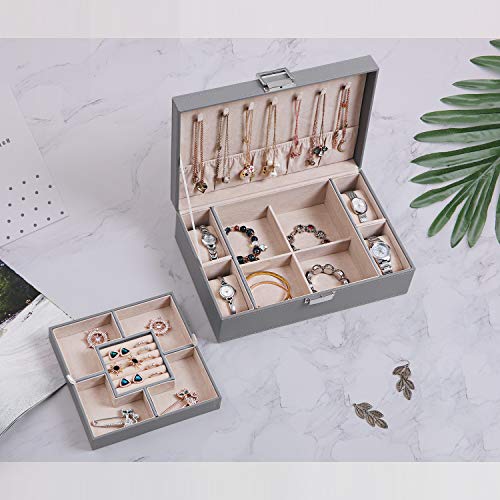 - SLEEK LOOKING & WELL CRAFT: Smooth high quality PU leather cover is wear-resistant and easy to clean by wet towel; Environmental medium density fiberboard; Soft refined velvet lining slots offer secure home for your jewels. Anti-rust metal clasp is handy to open and close; This well-built jewelry case is sturdy as well as modern looking