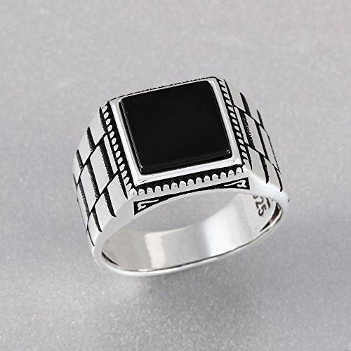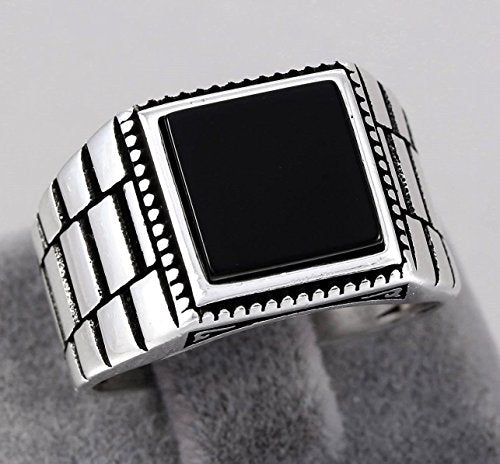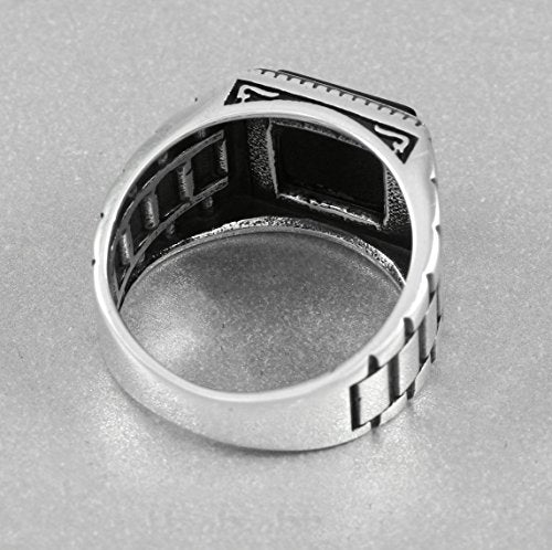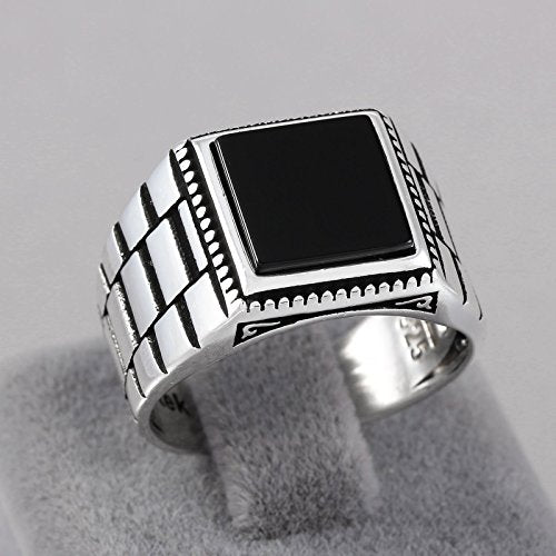 Details: This genuine silver ring has a very unique and cool design. We believe it will be one of your favorite accessories. It will also make a perfect gift for men. This top-quality silver ring has been produced with traditional Ottoman silver casting method. It's available in size 7- 13. It is polish for a smooth feel and comfortable wear. You can also consider this ring as an anniversary , birthday , Christmas or valentines day gift for your husband father son or boyfriend. It will definitely be among his favorite accessories . CHIMODA is a jewelry brand who sells the best quality silver jewelry for men and women made of Onyx, Agate and Cubic Zirconia stones