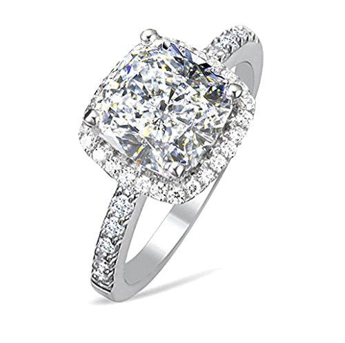 Diamonbella 101 Facets 2 Carat Princess Cushion Cut NSCD Simulated Diamond Ring 925 Silver Platinum Plated Halo (8)