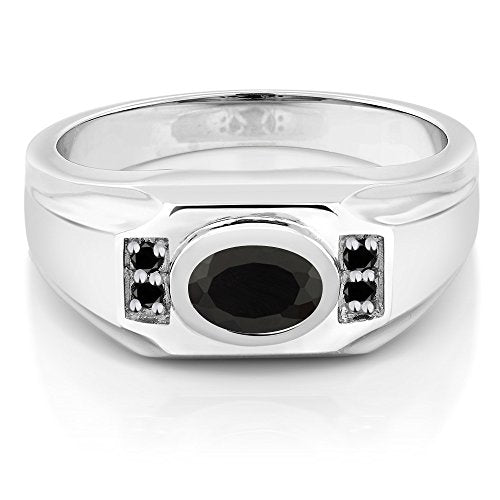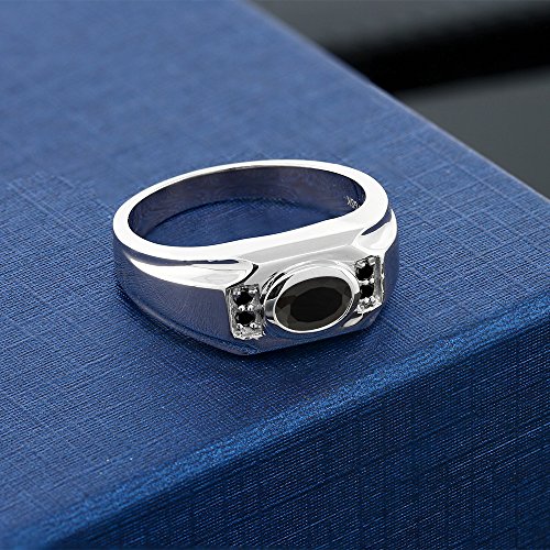 - MEASUREMENTS: 8x6mm Oval Black Onyx, 2x2mm Round Black Diamond. Total Carat Weight is 1.22 cttw.