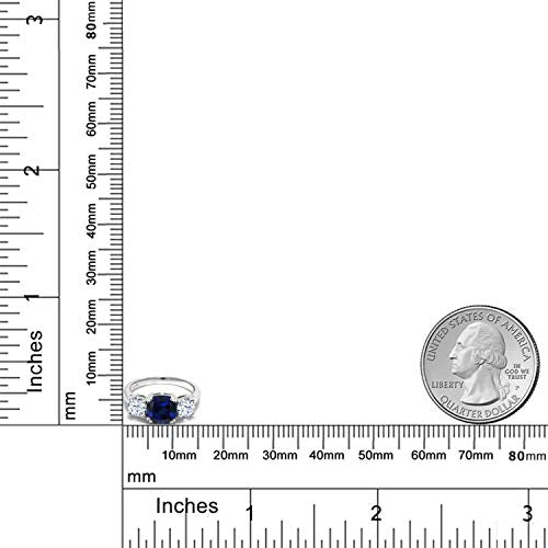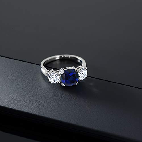 - MEASUREMENTS: 8x8mm Cushion Blue Simulated Sapphire, 5x5mm Round White Zirconia. Total Carat Weight is 4 cttw.