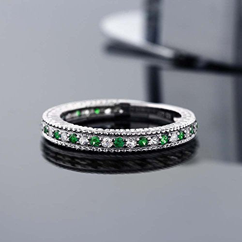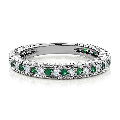 - MEASUREMENTS: 1.5x1.5mm Round Green Simulated Emerald, 1.5x1.5mm Round Hearts And Arrows White Created Sapphire. Total Carat Weight is 0.48 cttw.