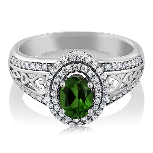 Gem Stone King Green Chrome Diopside 925 Sterling Silver Women's Ring 1.31 Ctw Oval (Size 8)