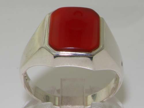 Gents Solid 925 Sterling Silver Natural Carnelian Mens Signet Ring - Size 13 - Sizes 6 to 13 Available
