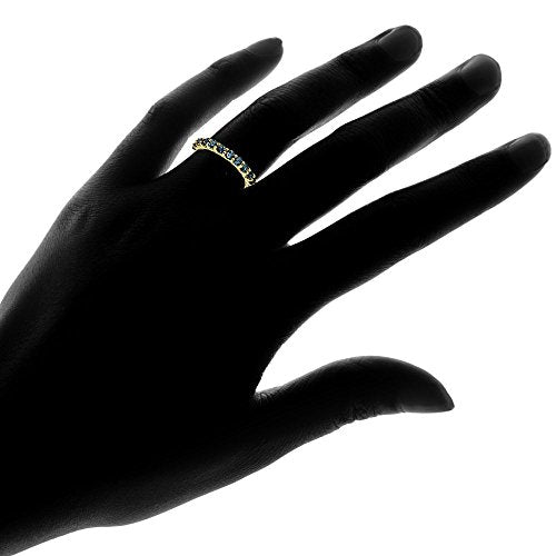 Details: Sterling Silver London Blue Topaz 3mm Round-cut Eternity Band Ring Everlasting and timeless, this classic eternity ring showcases 3mm round-cut genuine london blue topaz stones encircling a sterling silver or yellow gold flashed sterling silver band. Choose Metal and Size: Sterling Silver, Sizes 5, 6, 7, 8, 9, 10 Yellow Gold Flashed Sterling Silver, Sizes 5, 6, 7, 8, 9, 10 Get to Know Ice Gems: Ice Gems flaunts a dazzling splash of color and glamour. Our awesome line of genuine, created and simulated gemstone jewelry allows your inner strengths stand out! We carry a full variety of jewelry which includes: Birthstone , halo design, adjustable bracelets, lever-back earrings, stud earrings, solitaire jewelry, heart jewelry, infinity jewelry, gemstone fashion rings, gemstone tennis bracelets, religious jewelryand more. Great gifts for your girlfriend, fiancee, wife, mother, daughter, valentine’s day, christmas, hanukah, mother's day, birthday, anniversary, graduation. Gratitude: If there is any issues please contact us directly. Your feedback and suggestions will help us make better products and provide better service. Your feedback is our motivations to improve. We are looking forward to your 5 stars feedback. "