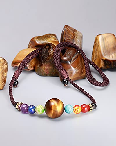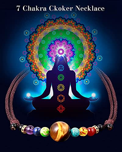 Jewever Natural Tiger Eye with 7 Chakra Choker Necklace for Women Men Crystal Necklaces Chokers wealth Meditation Yoga Crystals and Healing Stones