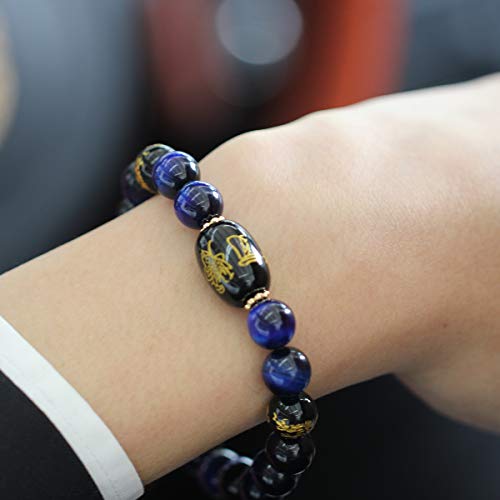 • ★Matercial:100% genuine and real stones ,tiger-eye and black agate, Bead diameter: 10mm, the totle Weight:33g,Bracelet length is about 6.5 inches to 7 inches;