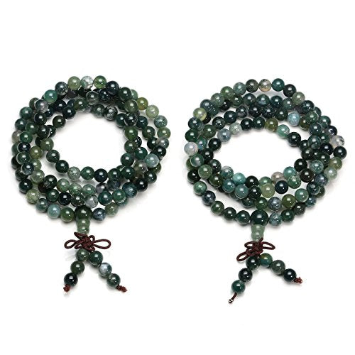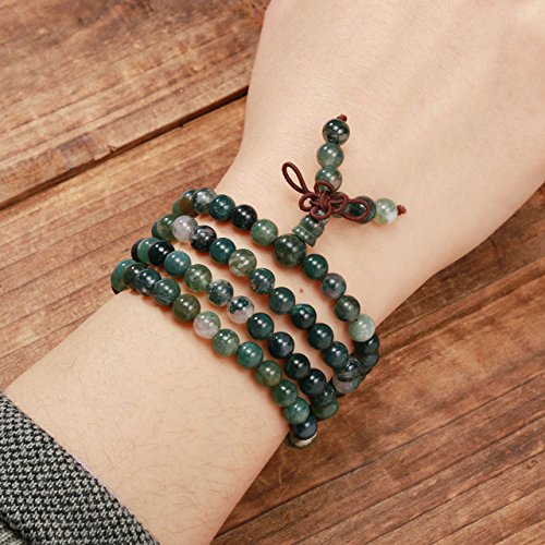 - Unisex 108 natural semi precious mala beads is praying, meditation, or yoga practices.Gemstone Material: Natural Moss Agate.Each order comes with Free Gift Pouch!