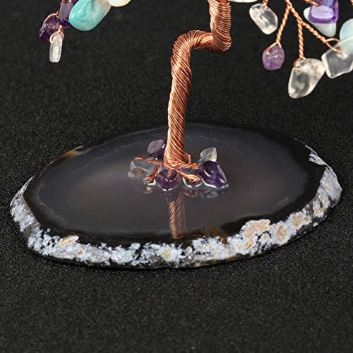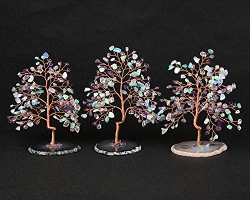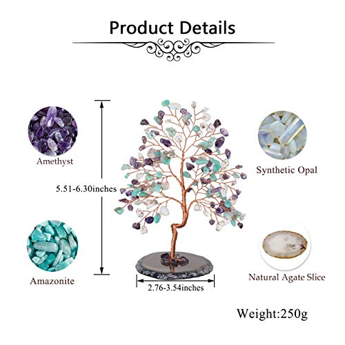 - Bonsai Money tree Ornaments are made of natural Tumbled gemstones,The base is made of natural geode agate slices, polished on both sides and geode inside. Agate slice base with a copper wire wrapped money tree sculpture with amethyst/amazonium/opalite crystal leaves, secured to and growing out of the crystal, hand-twisted. Leaves and branches can be arranged how you like. The best place to put the item is your living room and the table of your office.