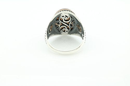 Details: Stone Size: 2.0 cm x 1.5 cm --- Stone Type: Agate (Aqeeq) --- Metal Type: Sterling Silver --- Other Metal Type: Bronze Details --- Weight: 9.50 grams All orders come in a special gift box. Please contact us if you don't see your size. We will do our best to obtain it from our warehouse or resize when possible.