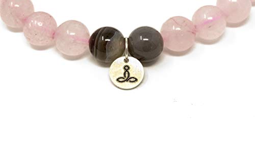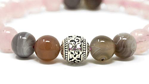 Larimar Accessories | 8mm Mala Beads Bracelet | Mala Gemstone Bracelet | Mala Yoga Bracelet | Mala Prayer Bracelet | Mala Meditation Beads Bracelet | (Rose Quartz & Botswana)