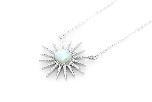 - ★Larimar Gemstones with 925 Sterling Silver Pendant Necklace Jewelry for Women