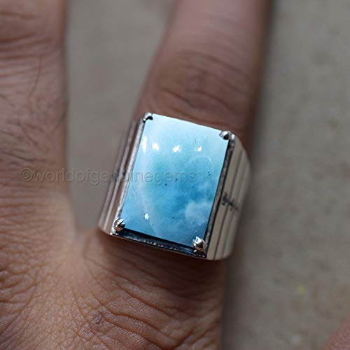 Thanksgiving gift for jewelry, cabochon larimar ring, genuine pectolite larimar ring, solid 925 sterling silver ring, signet heavy silver ring, designer statement ring, men's gemstone ring