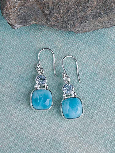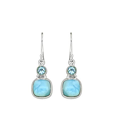 - Product Specifications: Gemstone - Larimar - Not Treated, Blue Topaz - Irradiated, Metal - Solid 925 Sterling Silver, Stone Size - 10 x 10, 5 x 5 mm, Product Weight - 5.8 gm, Length - 1.50 inches