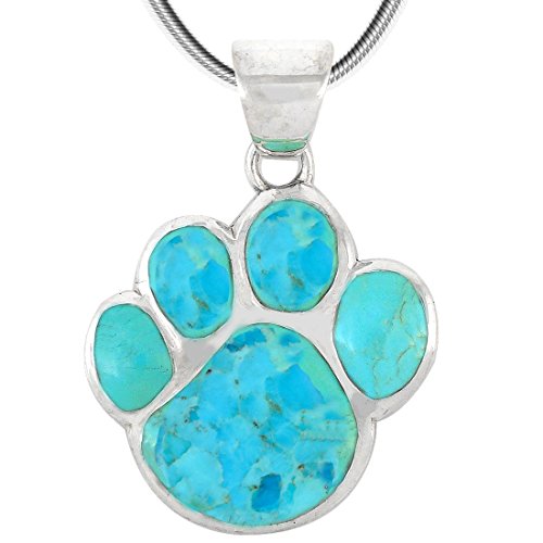 Dog Paw Pendant Necklace 925 Sterling Silver & Genuine Turquoise (20", Turquoise)