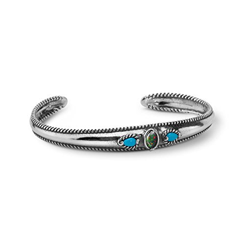 Carolyn Pollack Sterling Silver Sleeping Beauty Turquoise and Opal Triplet Cuff Bracelet Size Small