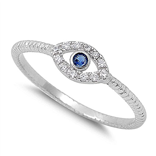 Evil Eye Blue Simulated Sapphire Polished Ring New .925 Sterling Silver Band Size 12