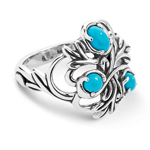 Carolyn Pollack Sterling Silver Blue Turquoise Gemstone Leaf Ring Size 10