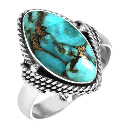 Jeweloporium 925 Sterling Silver Copper Blue Turquoise Handmade Ring Size 10.5