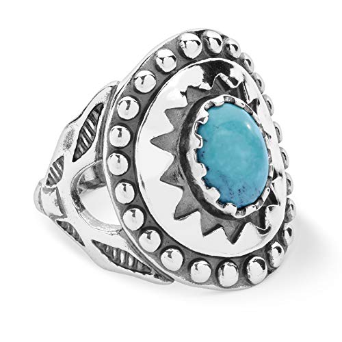 American West Sterling Silver Blue Turquoise Gemstone Sunburst Shield Ring Size 10