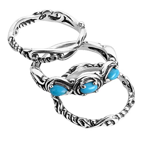 Carolyn Pollack Sterling Silver Blue Turquoise Gemstone Stackable Set of 3 Rings Size 10